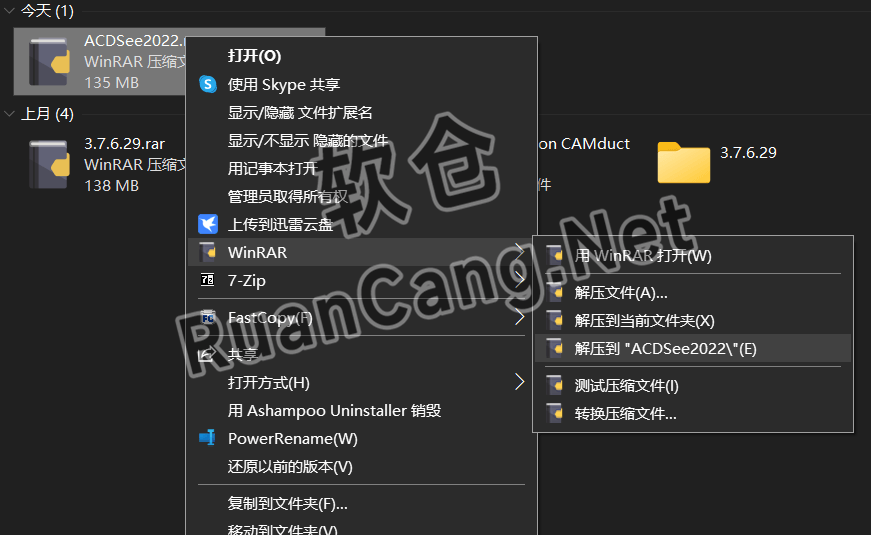 1.鼠标右击【ACDSee 2022.rar】压缩包(win11系统的用户需先点击“显示更多选项”)选择【解压到ACDSee 2022(E)】。