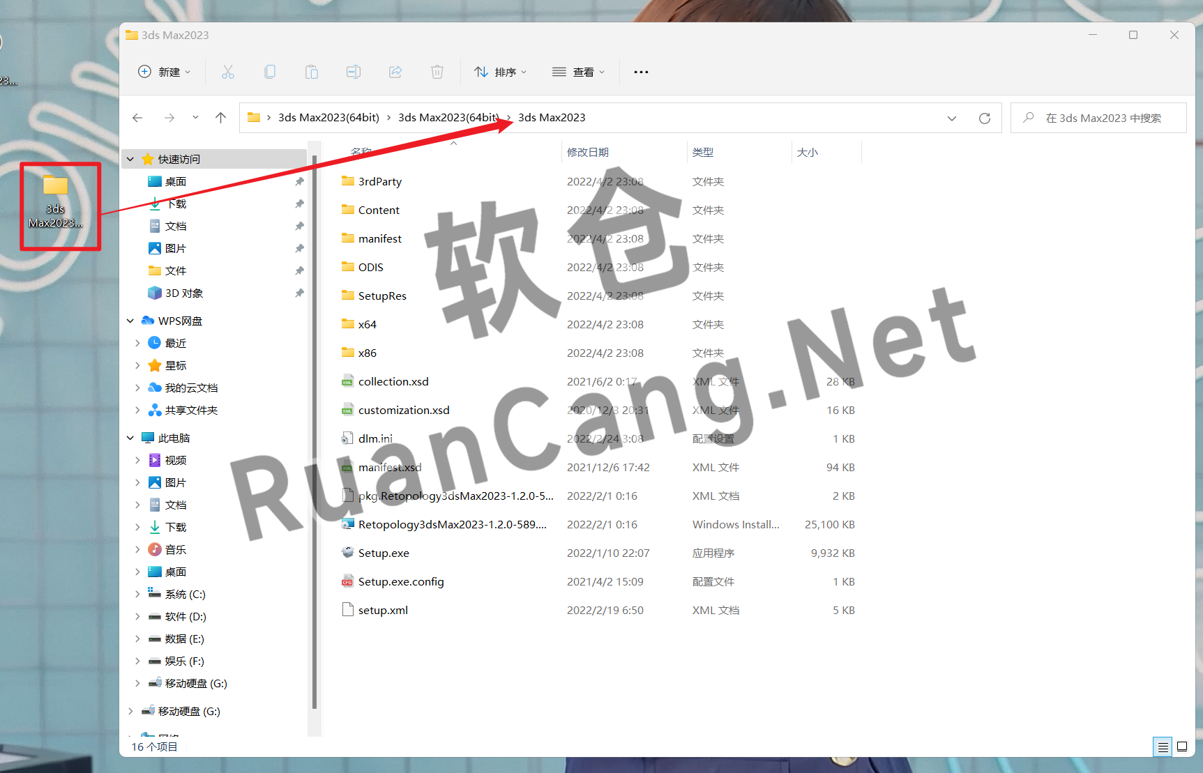 2.打开解压后的文件夹,双击打开【3ds Max2023】文件夹。